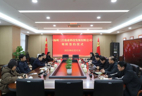 2月12日下午,揚州三江農(nóng)業(yè)科技發(fā)展有限公司劃轉(zhuǎn)簽約儀式在廣合集團舉行。廣合集團董事長陳斌、文旅集團董事長王宇翔出席簽約儀式。廣合集團總經(jīng)理王辰南主持儀式。區(qū)政府辦副主任陳逸文、區(qū)財政局副局長許鵬飛作為見證方出席了簽約儀式。廣合集團、文旅集團領(lǐng)導班子及部門負責人參加了儀式。 簽約儀式上,陳斌表示,三江公司的劃轉(zhuǎn),是區(qū)委、區(qū)政府從戰(zhàn)略全局出發(fā),做出的重大部署,集團將認真貫徹落實區(qū)委、區(qū)政府的決策部署,精心組織、周密安排,確保三江公司劃轉(zhuǎn)工作平穩(wěn)有序進行。秉持開放、合作、共贏的原則,切實推動三江公司與集團的深度融合。充分利用三江公司劃轉(zhuǎn)帶來的資源優(yōu)勢,立足“雙城雙區(qū)”戰(zhàn)略部署,助力廣陵高質(zhì)量發(fā)展。
